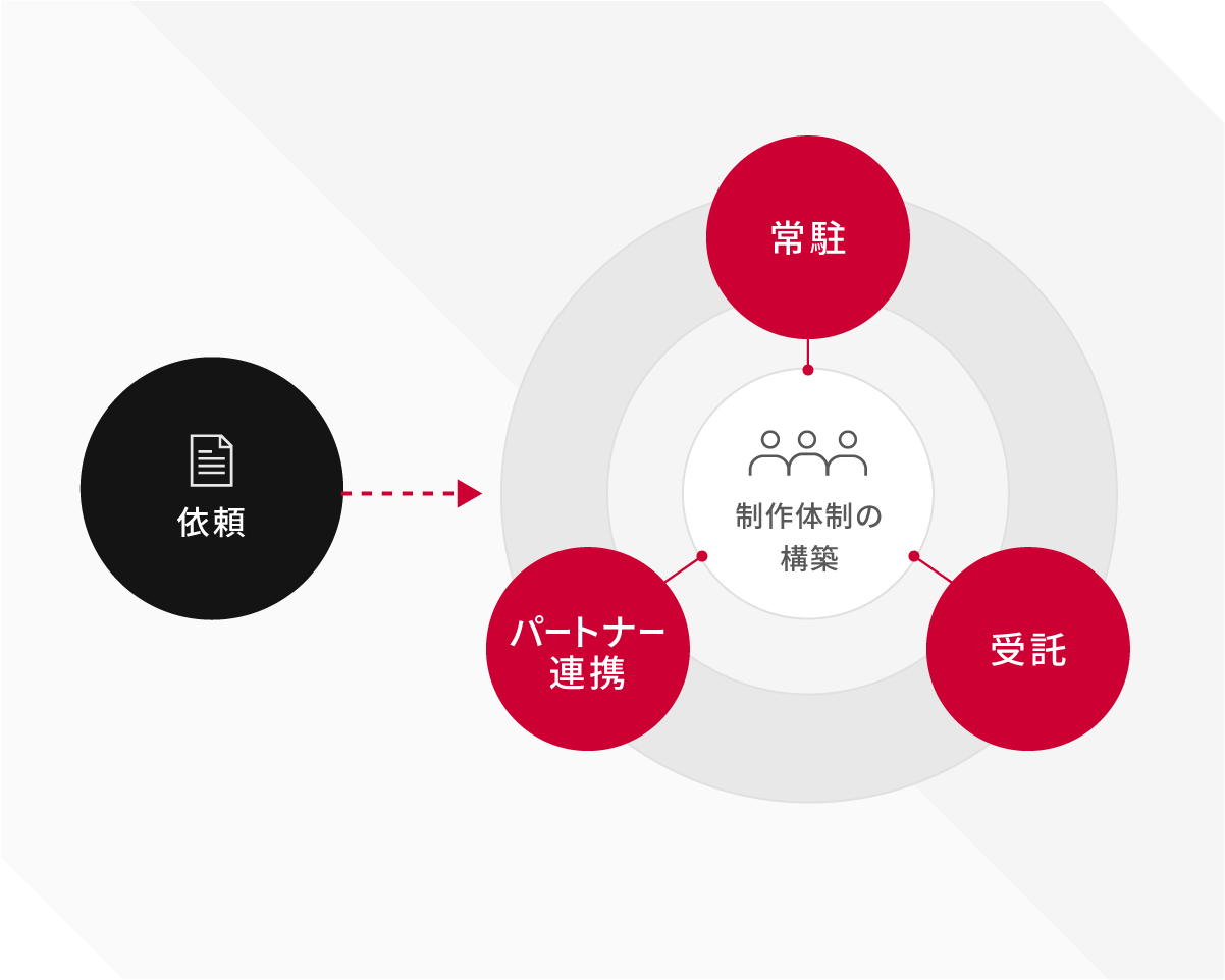 開発現場への常駐から受託制作まで。必要な体制をすばやく構築。