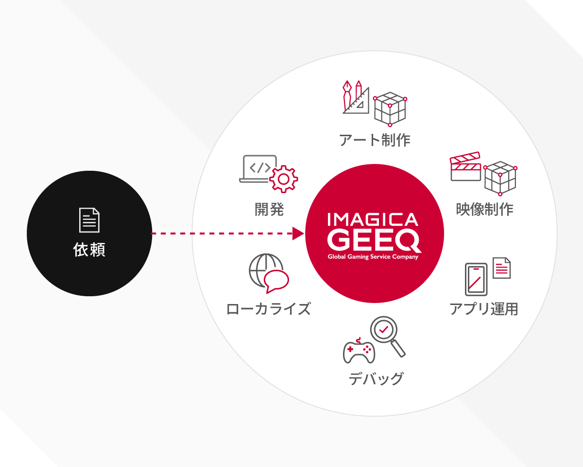 当社は映像業界で長年の実績を持つIMAGICA GROUPの一員です。映画や広告などで培ったコンテンツの企画力と最先端の映像製作技術を活用し、ユーザーのゲーム体験をより高いレベルに引き上げます。