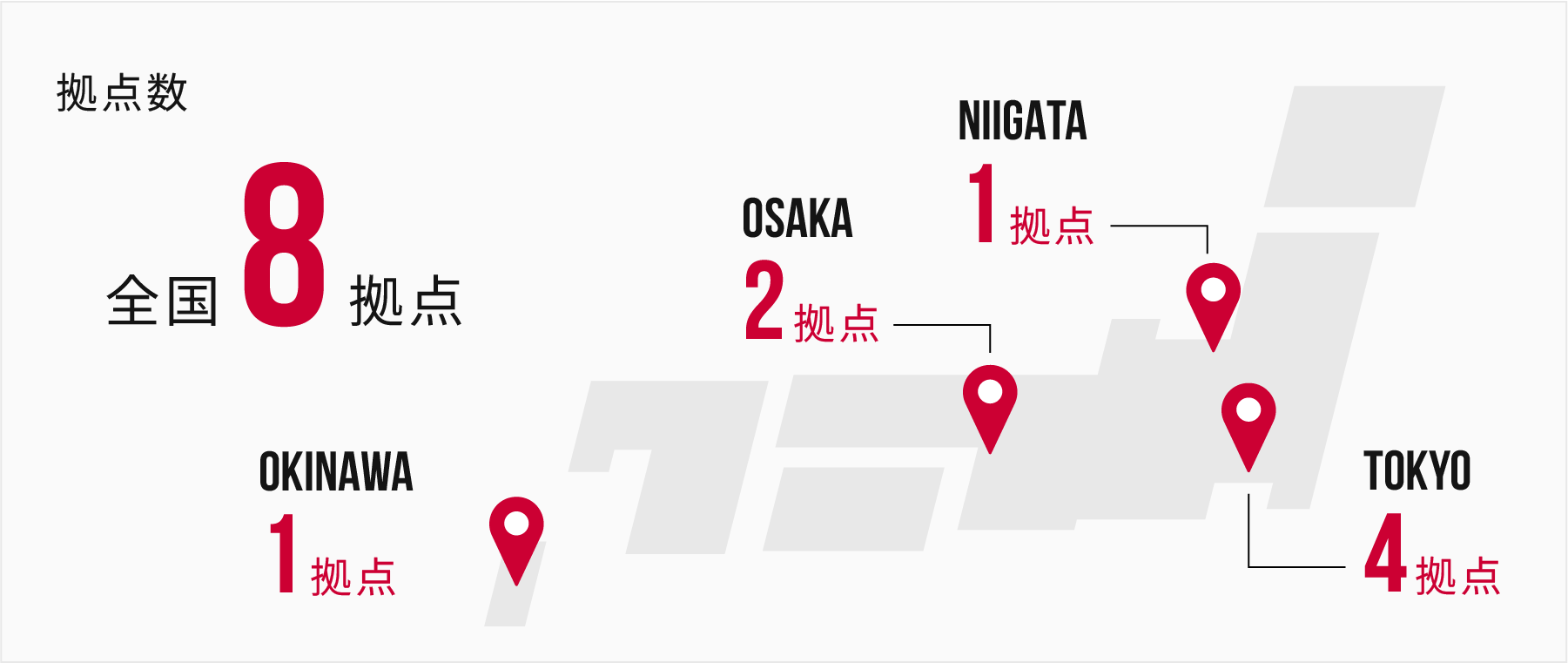 本社、制作スタジオ、テストスタジオなど、東京・大阪・新潟にある各拠点を紹介します。