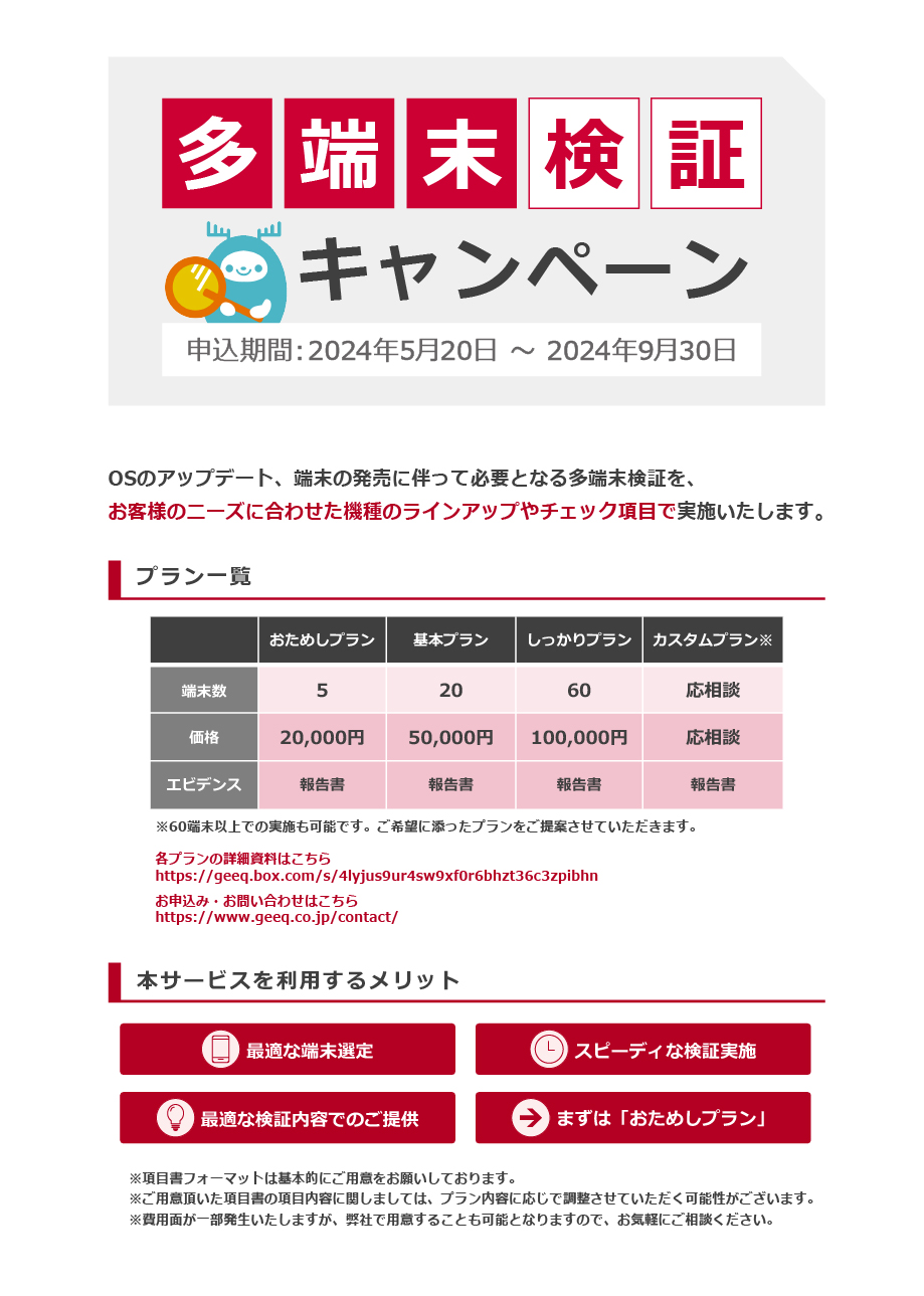 多端末検証を手軽にご依頼いただけるキャンペーンをご案内いたします。